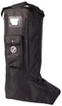 Black nylon boot bag with double zipper, side pocket with closure and handles.